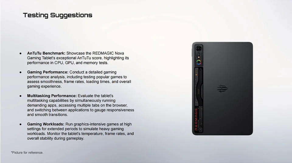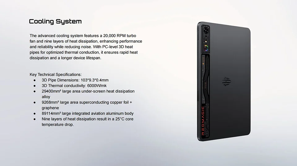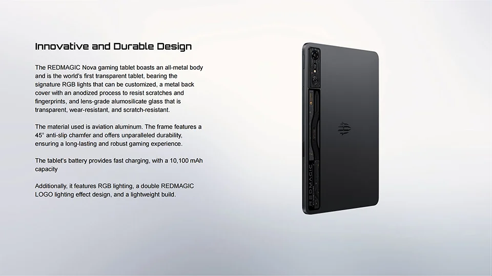In the Box: Tablet *1, USB C to USB C Cable *1, Quick Guide *1, REDMAGIC Sticker *1