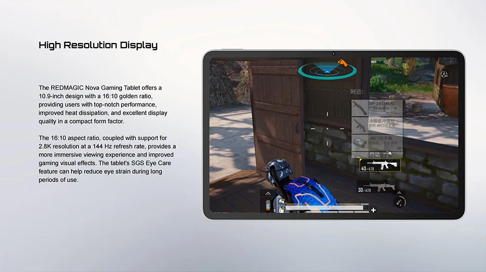 >Screen — 10.9 inches, Screen Resolution: 2880 * 1800; Screen Refresh Rate: 144Hz
