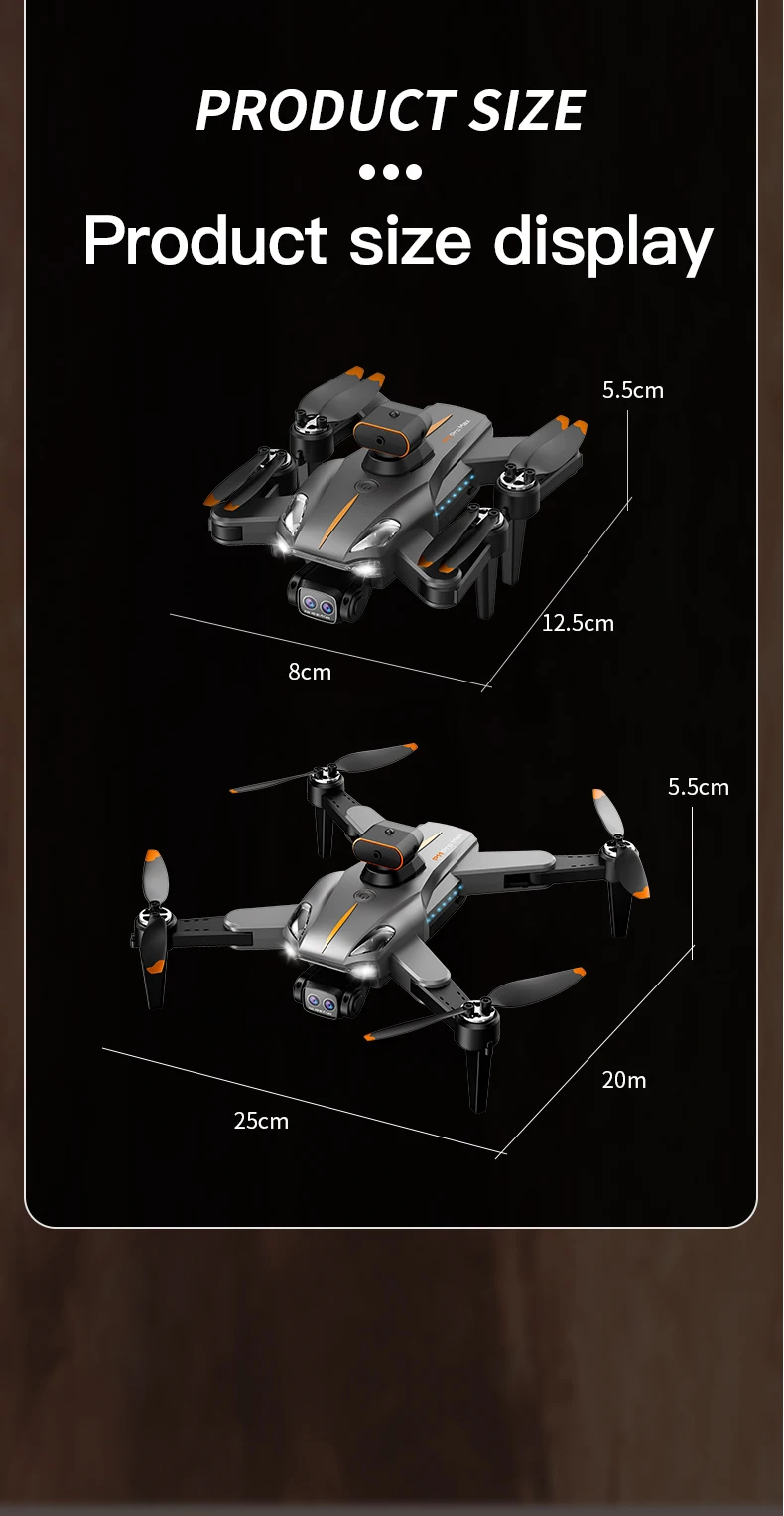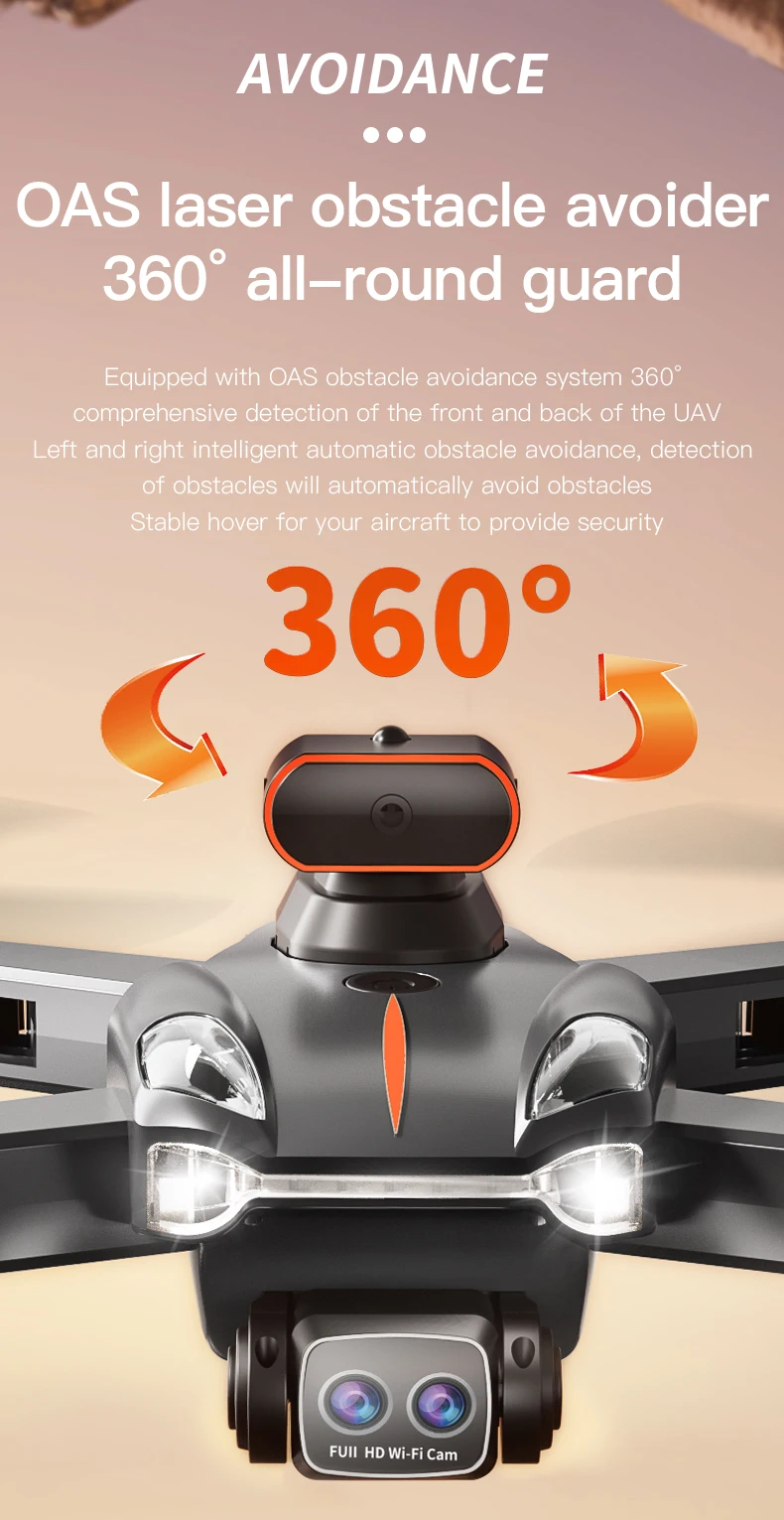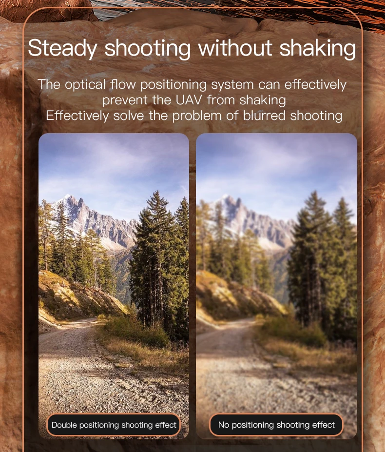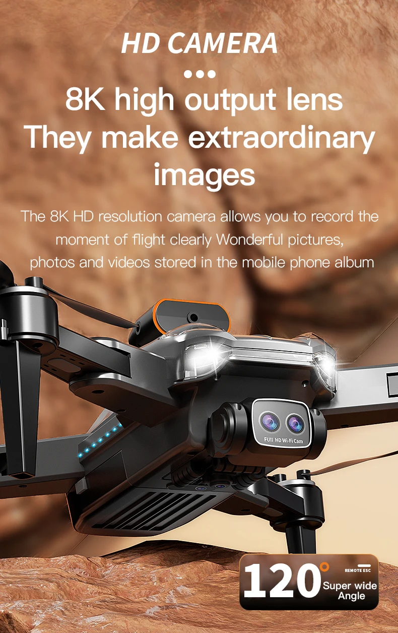 1. The front lens is placed with wide-angle 8K high-definition WIFI, and the optical flow high-definition lens at the bottom can switch the camera angle. The servo gimbal design increases stability, and EIS electronic image stabilization is added to make the picture lines clearer