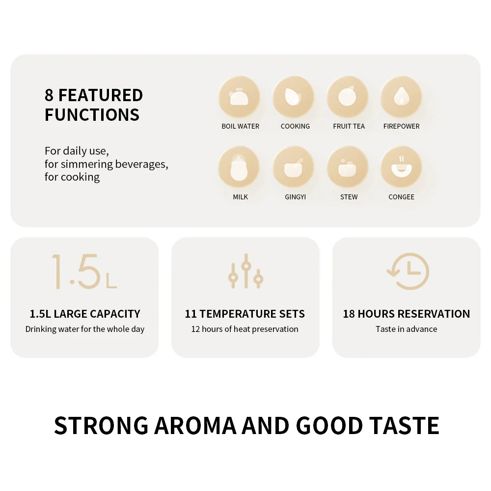 CONVENIENT AND EASY TO USE 40-90’C MULTI-STAGE FIXED TEMPERATURE  LONG-LASTING HEAT PRESERVATION FOR 12 HOURS