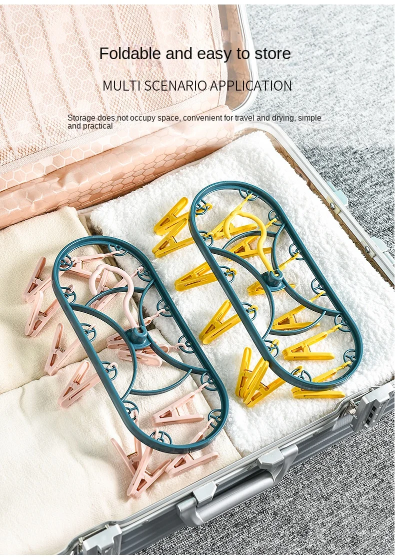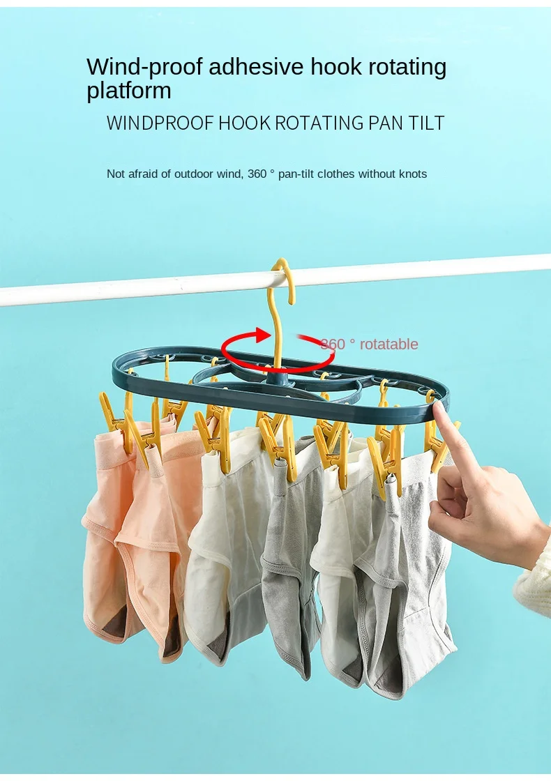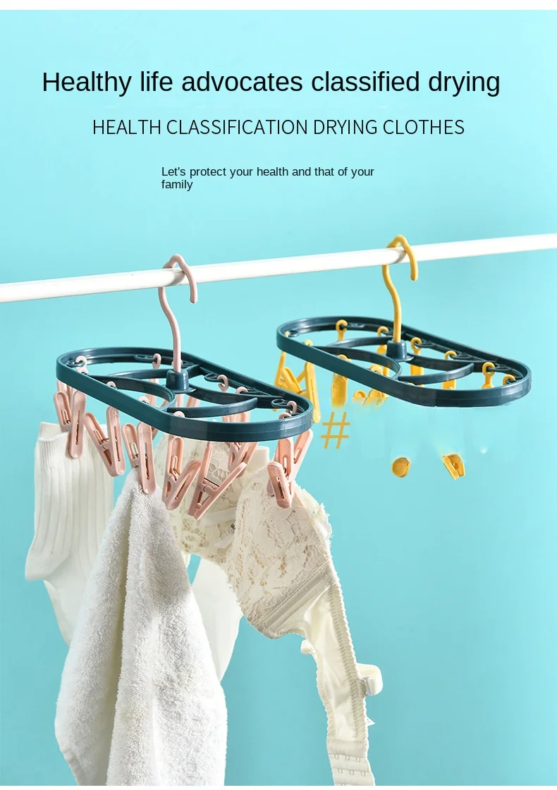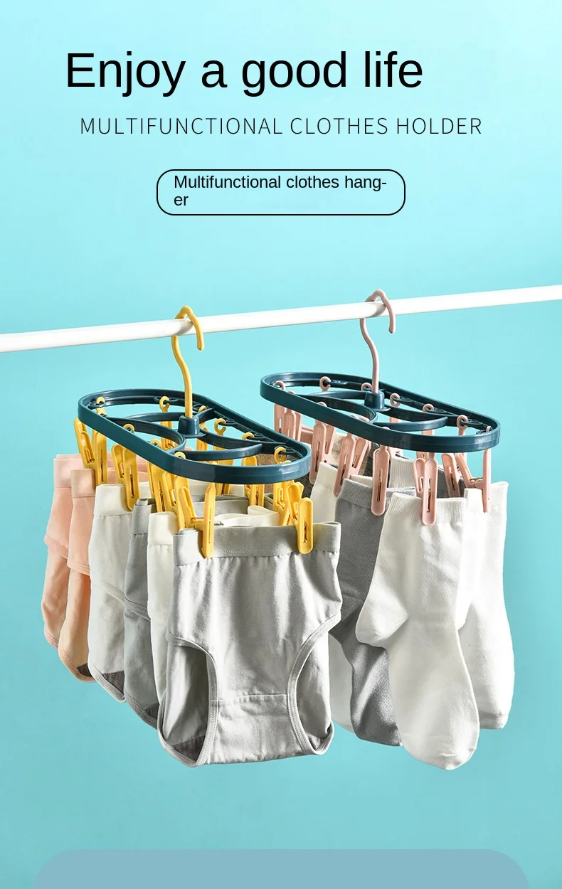 2890 Plastic Drying Rack 12 Clips Windproof Multifunctional Dormitory Household Underwear Socks Drying Rack