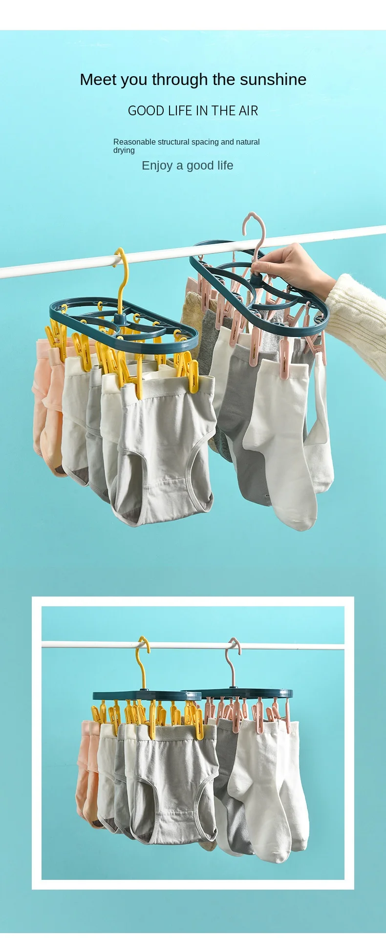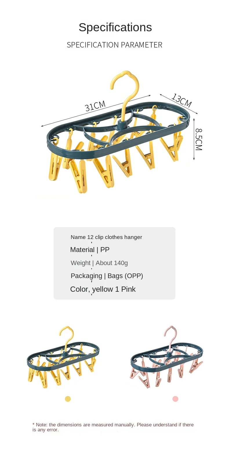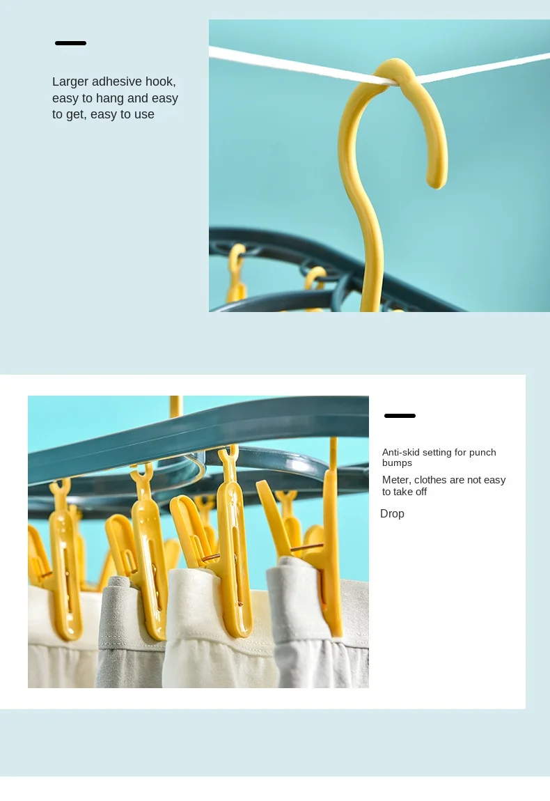 2890 Plastic Drying Rack 12 Clips Windproof Multifunctional Dormitory Household Underwear Socks Drying Rack
