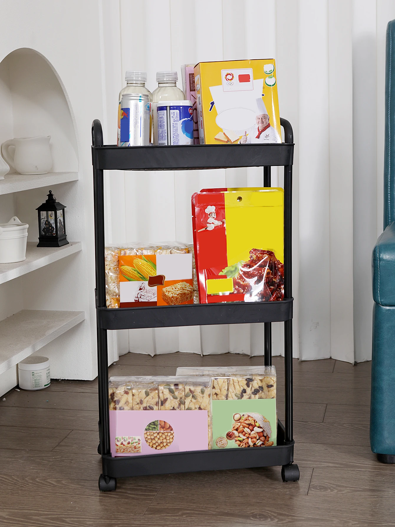 【Sturdy and large space】Each floor of the storage cart is composed of a sturdy plastic storage basket and 4 flexible wheels, and the widened storage space can place vegetables, fruits, snacks, drinks, tools, art supplies, toys, baby products , kitchen supplies, toiletries, office supplies, etc.