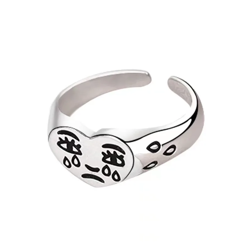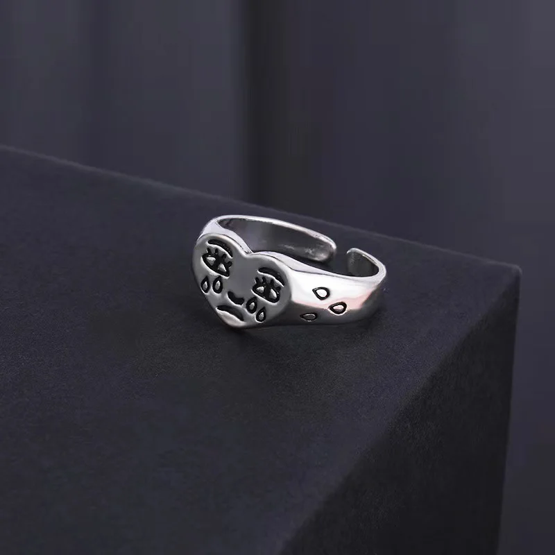 Retro Heart Shape Crying Face Ring For Men Women Silver Color Punk Gothic Open Ring Handmade Unisex Designer Jewelry AccessoriesAvailability: 60 in stock