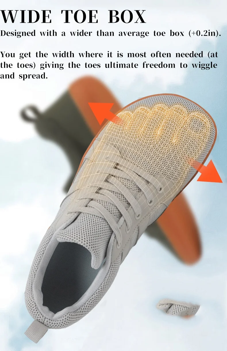 Wide toe box allowing space for optimal, anatomical toe positioning.