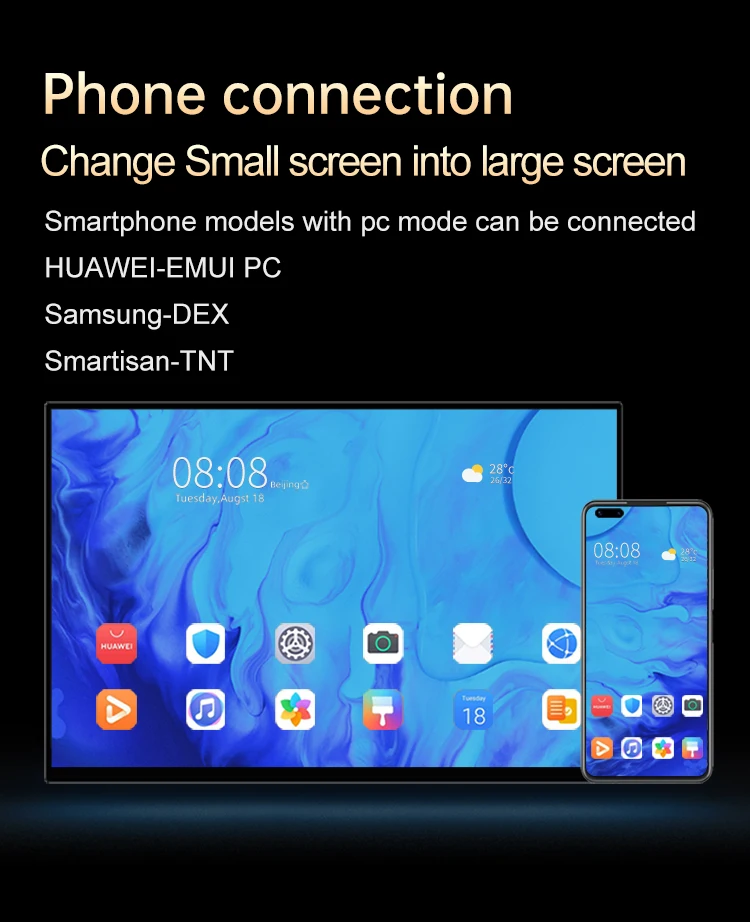 – Interface 1: 1*Standard Hdmi-Compatible, 1*USB Type-A 2.0, 1*3.5mm Aux