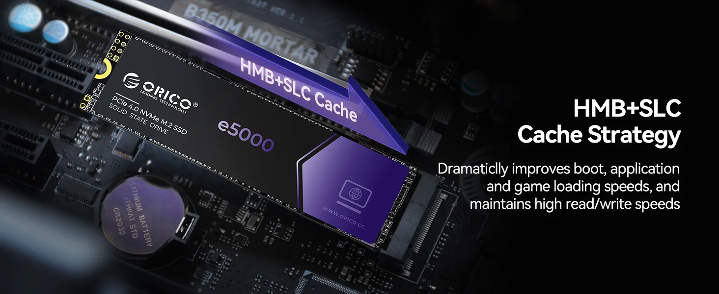 The SSD uses SLC dynamic caching to boost performance, delivering faster data transfers and smoother multitasking. Fully utilizing the PCIe Gen4 x4 interface, it ensures quicker load times and efficient handling of demanding tasks.