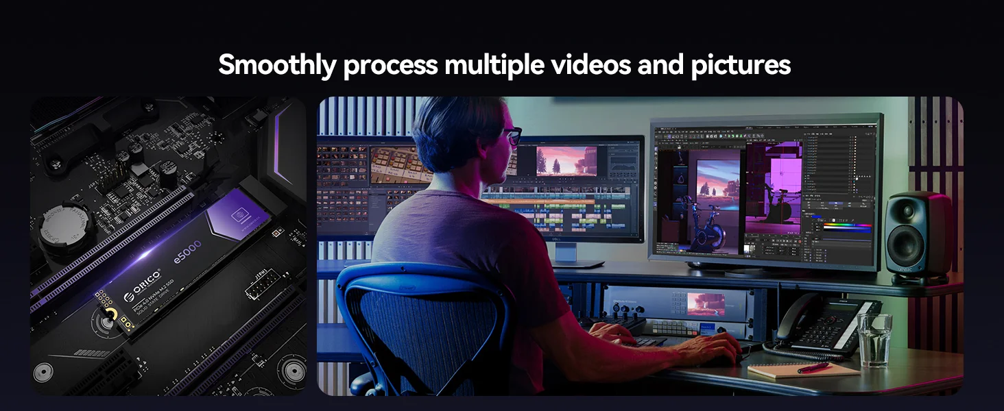ORICO e5000 NVMe SSD is next-generation storage designed for creators and professionals. Fuel your AI-enabled applications and accelerate your workflow with NVMe, PCIe Gen 4 technology. Plus, create without limits with up to 4TB capacity. No matter your creative process.