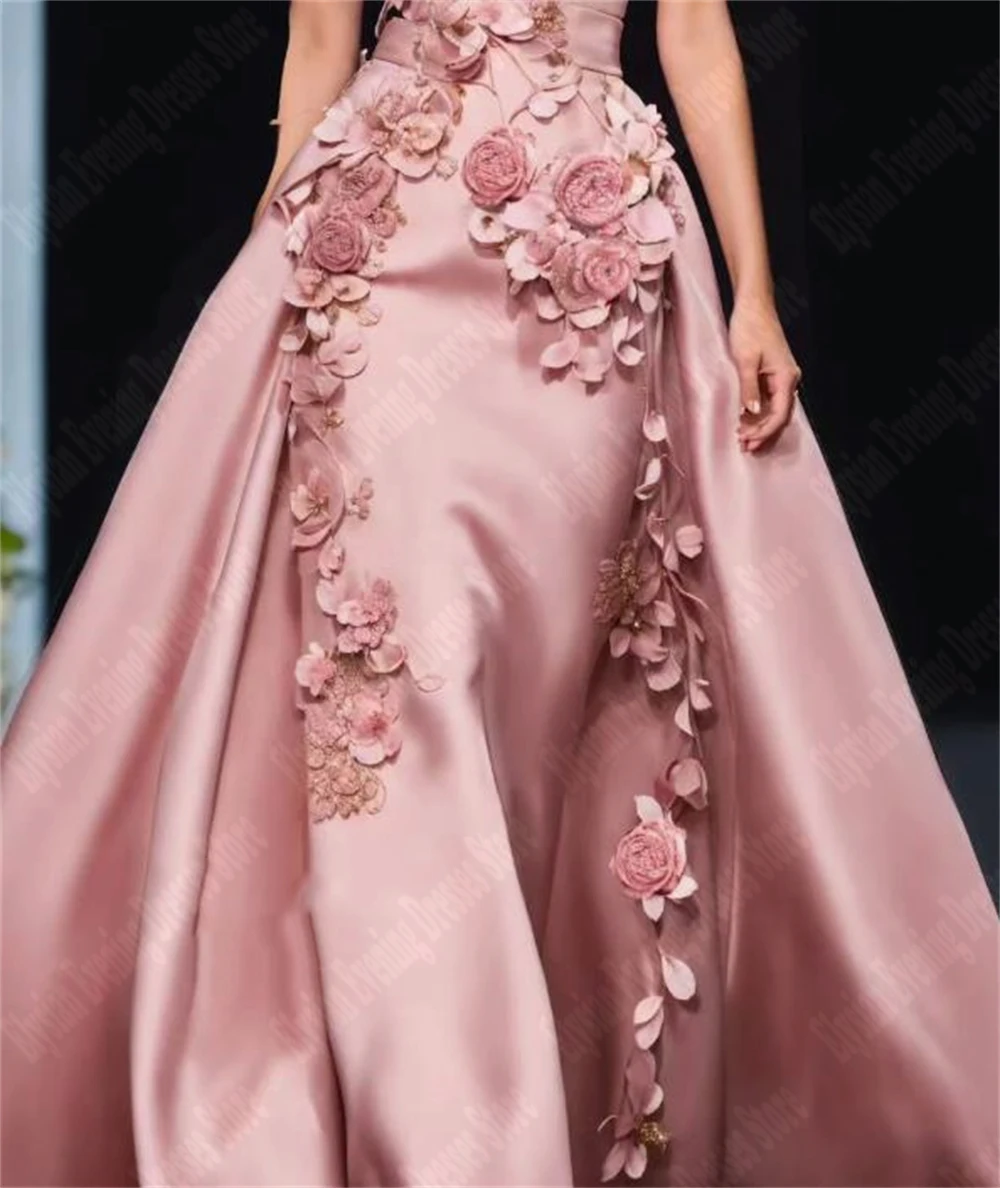 2025 Elegant Evening Dresses A Line 3D Flowers Sleeveless Formal Princess Party Gowns V-Neck Customized Satin Vestidos De Noche2025 Elegant Evening Dresses A Line 3D Flowers Sleeveless Formal Princess Party Gowns V-Neck Customized Satin Vestidos De Noche