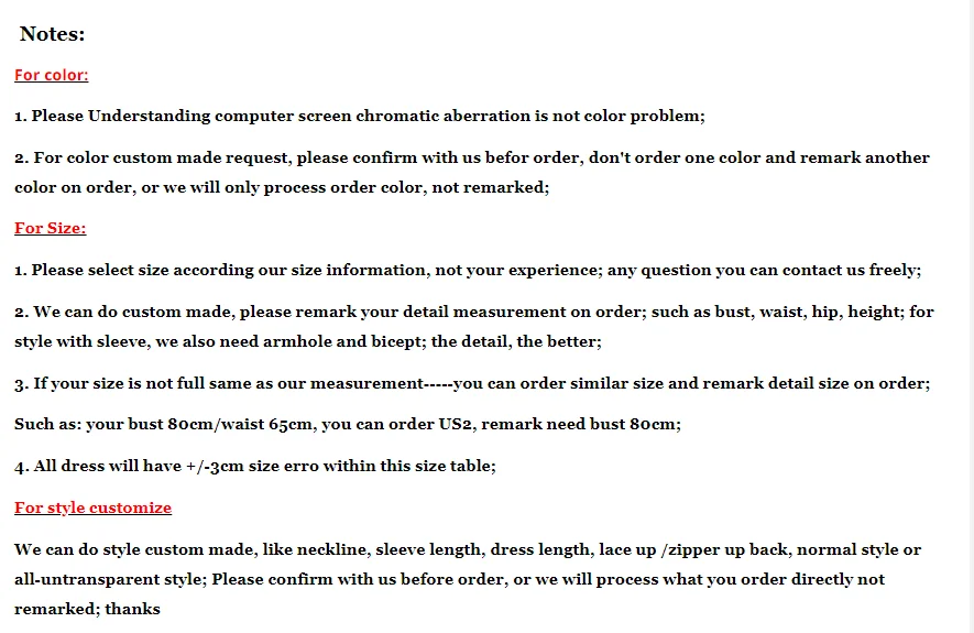 Wrong Size, Wrong Colour, Wrong style, Damaged dress- 100% Refund or remake one .
