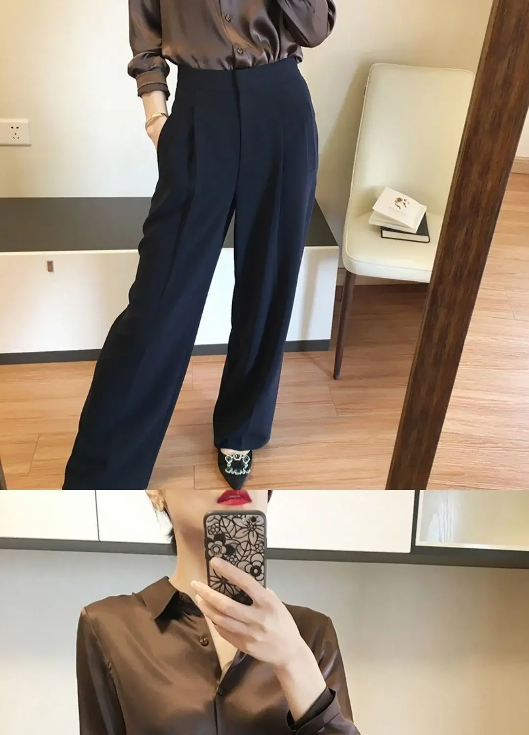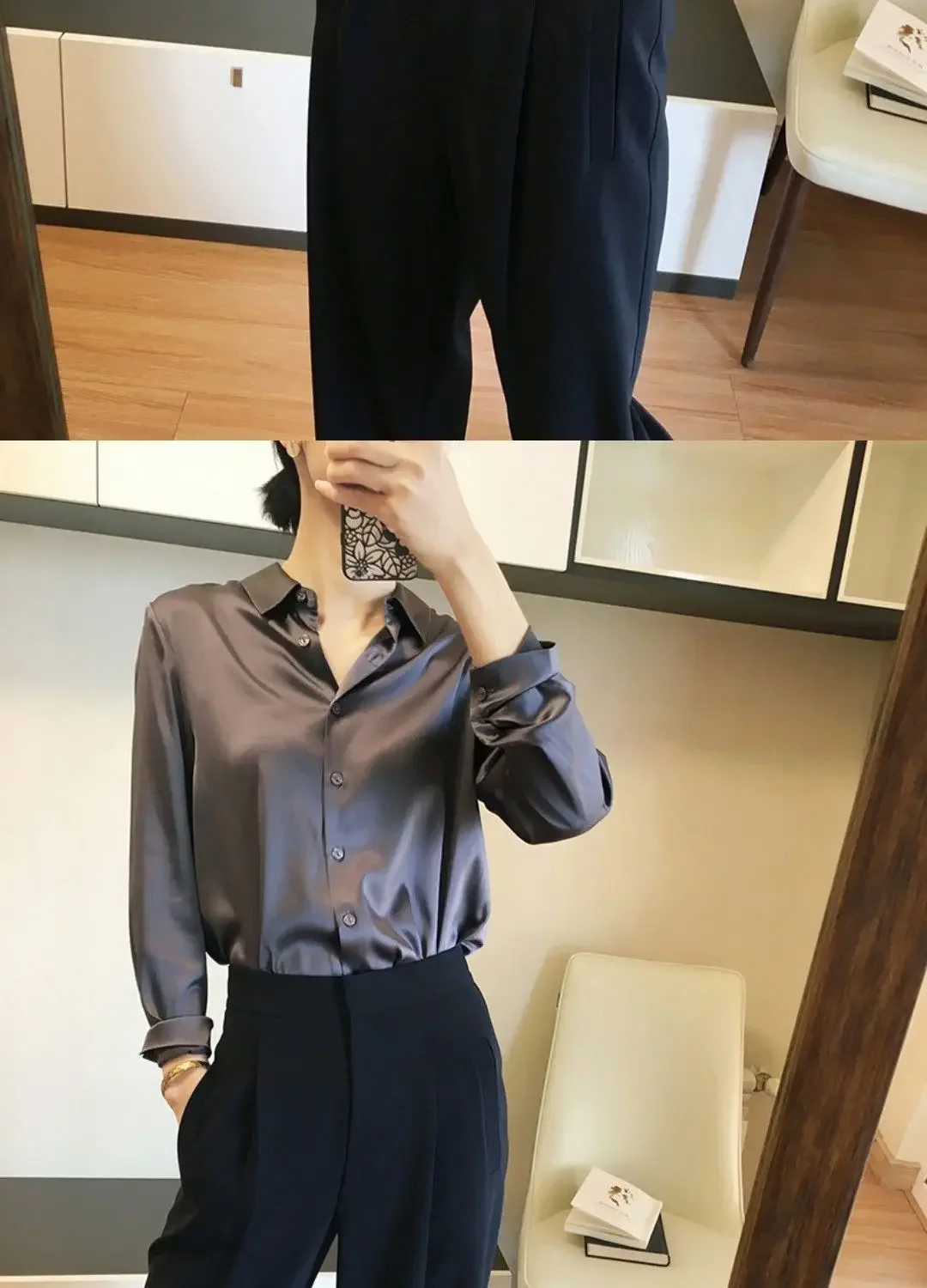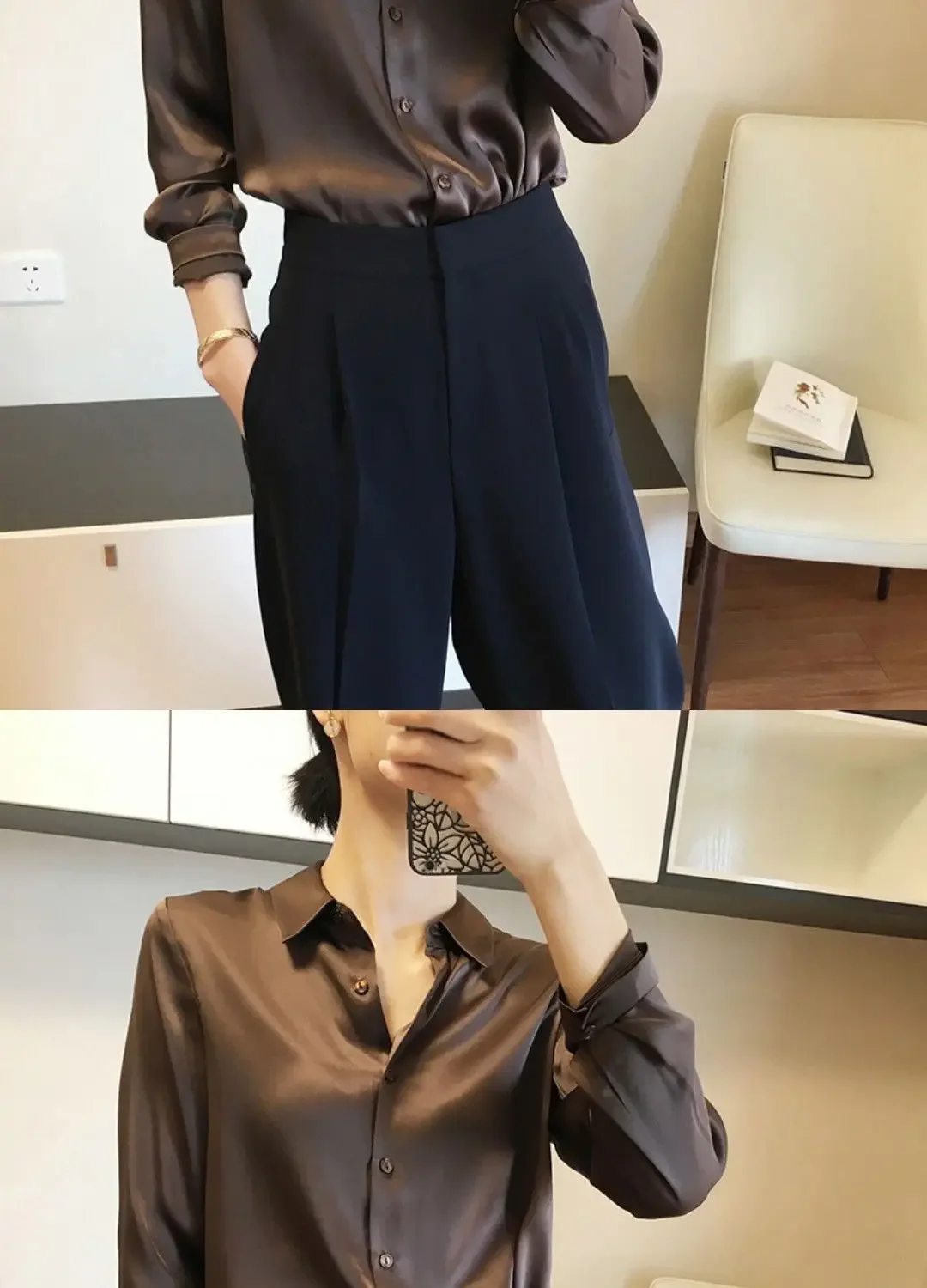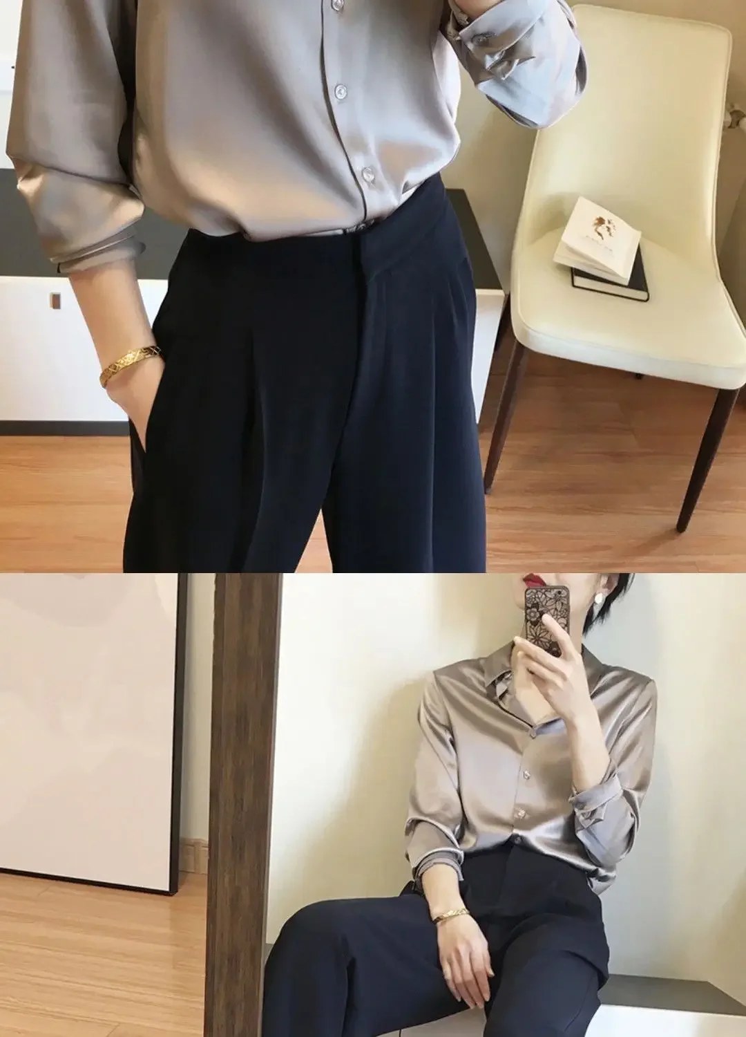 - Blouse Features 7: Satin shirt woman